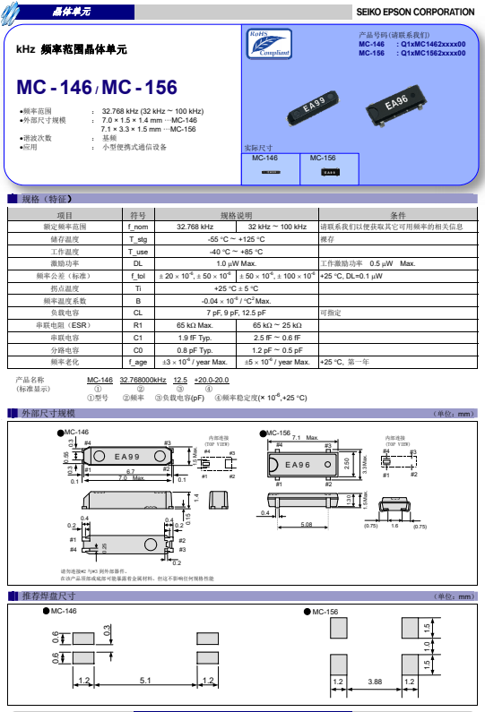 Q13MC1462000200|12.5pf|32.768KHz|7015mm,Q13MC1462000200晶振,愛普生日本進(jìn)口晶振,負(fù)載電容12.5pf,頻率32.768KHz,尺寸7015mm,小型便攜式通信設(shè)備晶振,錄音機(jī)晶振,智能音箱晶振,家電影音系統(tǒng)晶振,智能手表晶振.
