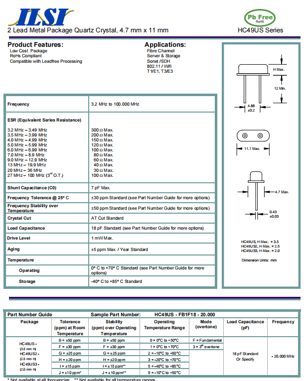 HC49US-FF5F18-18.4320~ILSI插件晶振~18.432MHz~18pf ,參數(shù)圖