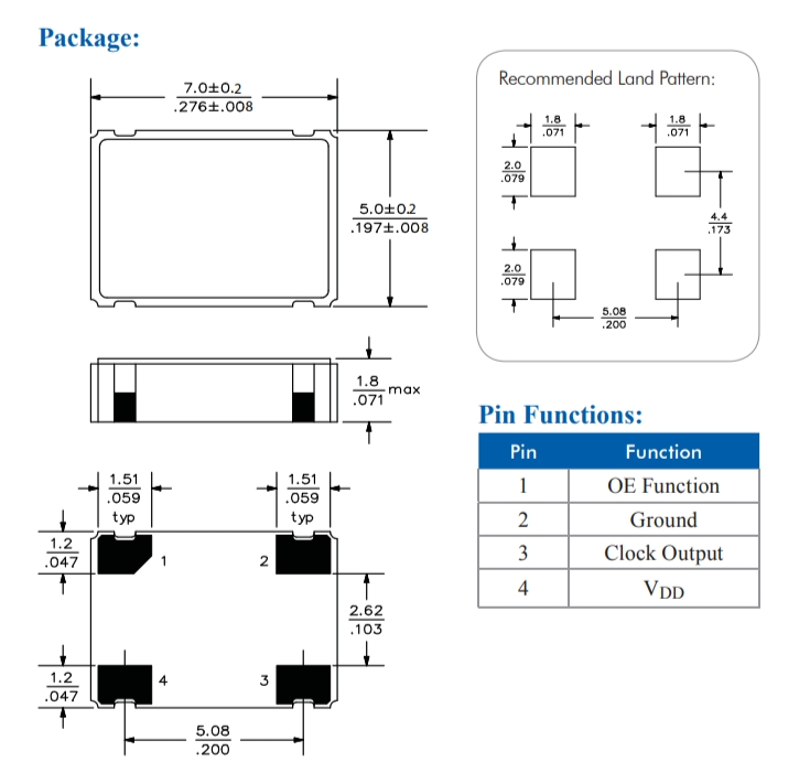 | Size/Dimension尺寸 | 7050振蕩器 | 最小包裝數MPQ: | 1000 |