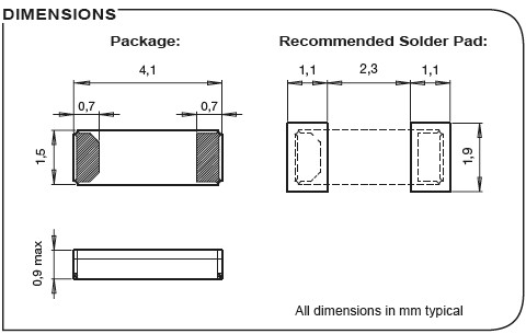 CC5V-T1A-32.768kHz-12.5pF-20PPM-TA-QC,Micro無源晶振,4115mm 尺寸圖