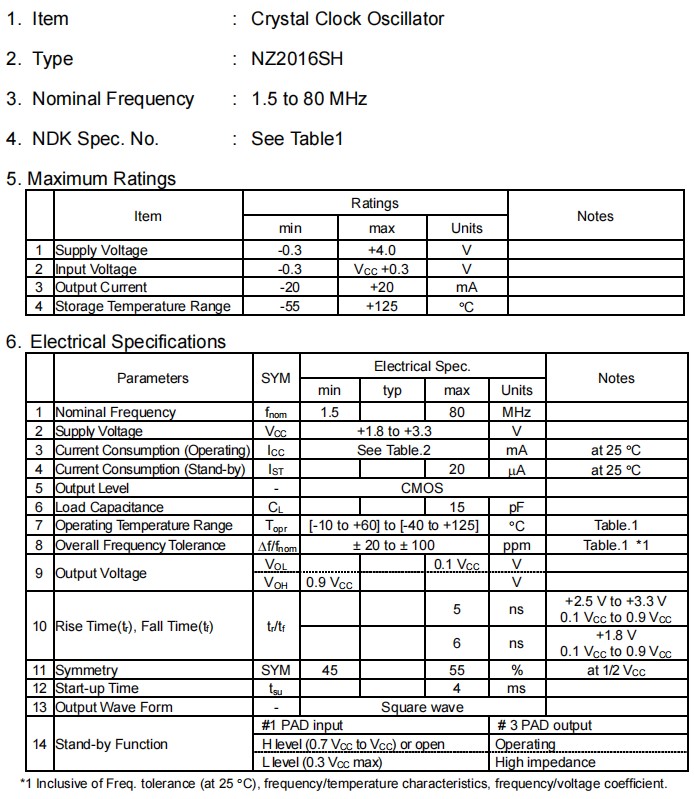 NZ2016SH-24.000MHZNSC5022C汽車導航系統,NDK四腳貼片晶振,參數圖