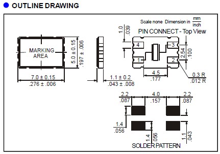 H13-13.000-16-5050-EXT-TR,Raltron無(wú)源晶振,7050mm,-40~85°C 尺寸圖