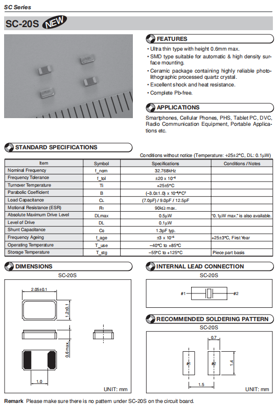 | Q-SC20S03220C5AAAF | 精工晶振 | SC-20S | 32.768kHz | ±20ppm | ±20ppm | 12.5pF |