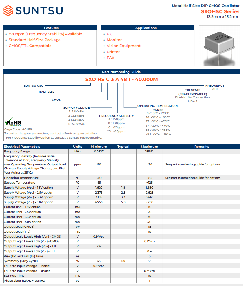 | SQG32L3D481N-300.000M | LVDS | 1.5ps | 3.3V±5% | ±20ppm | -40°C - +85°C |