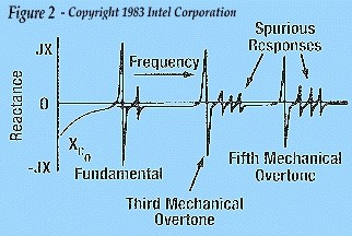 無線應用中最常用的晶體切割角度是AT切割(見圖1),以這種方式制造的石英晶體可以以相對高的頻率獲得,表現出優異的頻率與溫度穩定性,并且成本適中,從1MHz到1GHz以上的基本諧振頻率是可能的,但由于價格和其他限制,大多數AT切割晶體的基本頻率在1.8到40MHz之間,AT切割晶體的諧振模式(泛音)大約是基模的奇數倍(見圖2),為這些泛音指定的石英晶振通常落在24至200MHz的頻率范圍內.