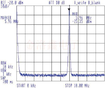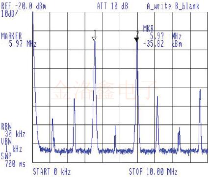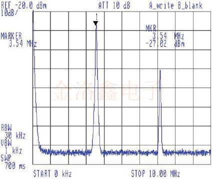 下面的兩個圖表顯示了相同的信息,但是一個圖表在50歐姆負載上使用了以毫伏為單位的線性垂直刻度,另一圖表以dBm為單位(對于50歐姆阻抗負載).RED和BLUE線同時出現的3K到10K范圍是兩個晶體同時振蕩的地方.