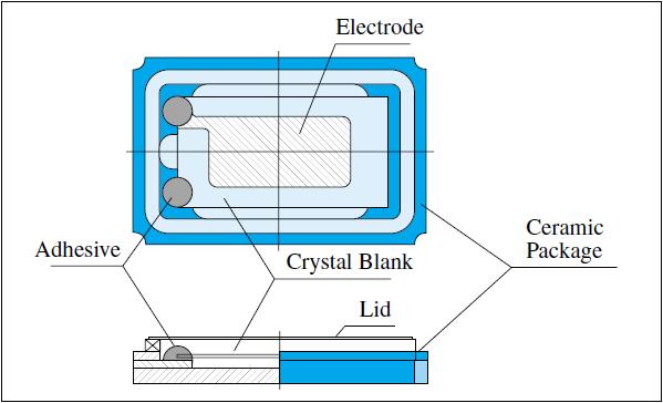 使用金屬封裝的石英晶體以BANE等金屬支持芯片。SMD在使用陶瓷基板的情況是可以直接在芯片上定位的。從人工水晶切出的芯片,在電極上鍍膜,并在基板上定位,以導電性黏著劑加以固定后封裝。整體來說,雖然是相當簡單的結構,但是無論是材料的選擇、制程的條件,都會影響到石英晶體的性能。這幾年,特別是移動電話上使用的石英晶體,相當要求具有防摔特性,其他的特性也都被要求具有可信度。石英晶體在作成SMD之后,其落下沖擊性與Reflow特性也會大大提升。這是因為SMD是以兩端支撐的方式來固定芯片,使石英晶體趨向無壓力的狀態。