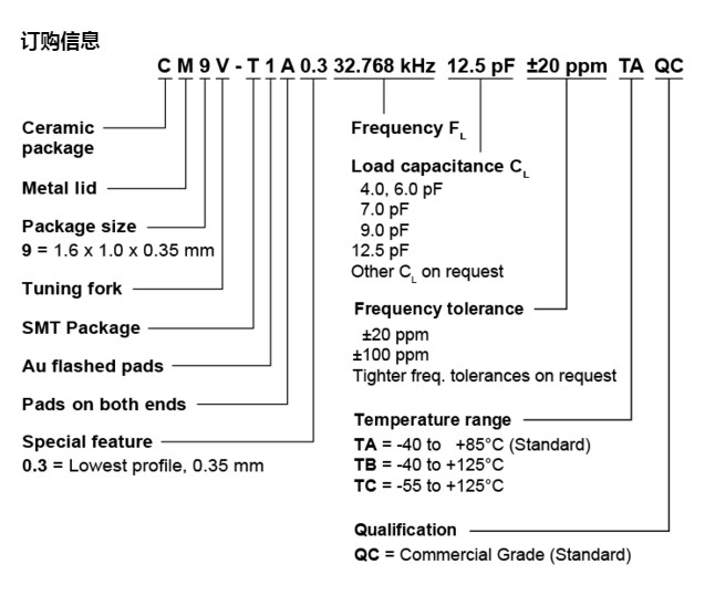 | CM9V-T1A-32.768kHz-12.5pF-20PPM-TA-QC | Micro Crystal | 晶體 32.768 kHz 12.5 pF +/-20 PPM -40/+85C |