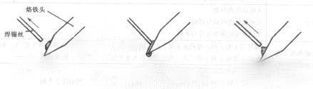 如下圖所示,當(dāng)烙鐵頭沿斜上方撤離時(shí),烙鐵頭上帶走少量的錫珠,它可形成圓滑的焊點(diǎn);圖1所示,當(dāng)烙鐵頭垂直向上撤離時(shí),可形成拉尖毛刺的焊點(diǎn);圖2所示,當(dāng)烙鐵頭以水平方向撤離時(shí),烙鐵頭可帶走大部分錫珠。