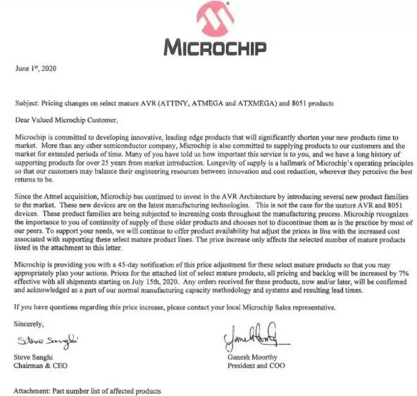 Microchip Crystal公司宣布7月15日起這些產(chǎn)品將漲價百分之七