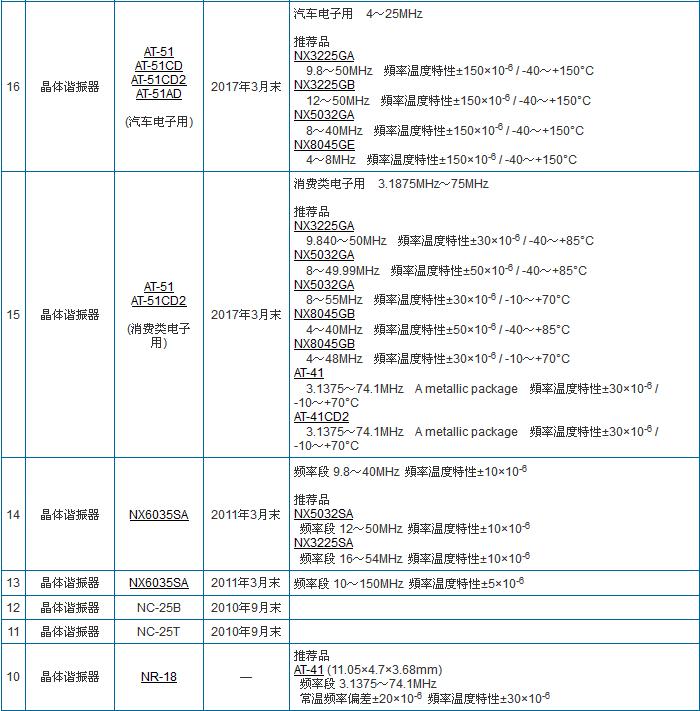 以下是金洛鑫電子為廣大新老客戶整理的NDK晶振停產更新表: