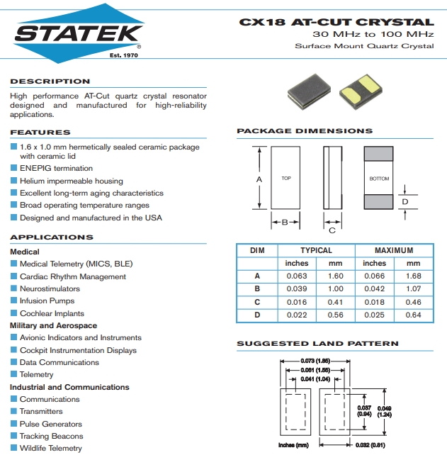 Statek超小封裝CX18V音叉石英晶體的可靠性傳奇